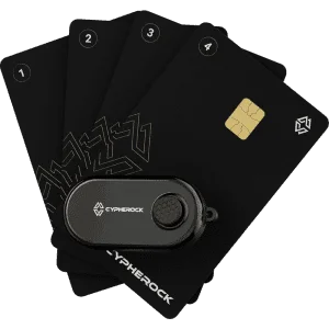 Hardware wallet with a multi-factor authentication system and carbon key backup. Dual-chip architecture for security.